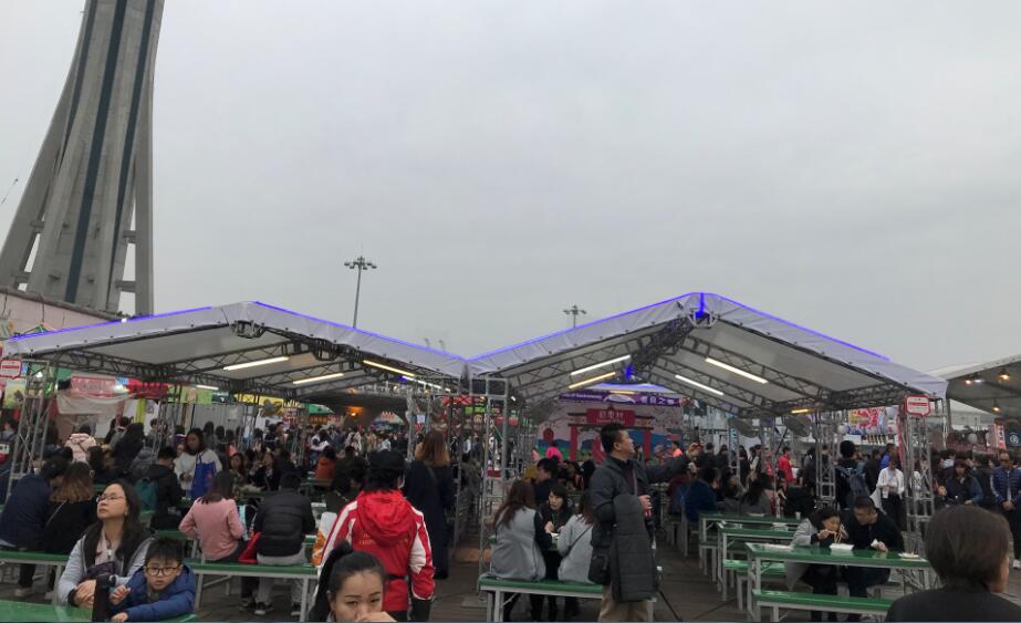 搭建42座8*4.5*2.7米,配套白色顶布,螺丝固定;