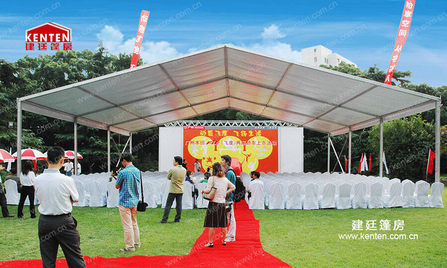 建廷为本田飞度上市活动提供篷房租赁服务,篷房搭建时间为一天,篷房使用地点广州天河区。篷房规格:25*30*4米